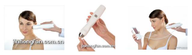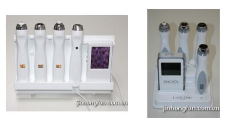 共有三個探頭,一個探頭一項功能,分別用來測試肌膚的油脂、水份和色素。它的外觀小巧、美觀、攜帶方便,可為補水、保濕、控油、美白、防曬等各種類型護膚品提供促銷支持。它操作簡便,只要輕輕將探頭壓在皮膚表面,測試結果結果就會以數值的形式顯示探頭握柄的顯示屏上。如果再配上便攜式皮膚顯微鏡就能現場觀察客戶的皮膚顯微圖像。