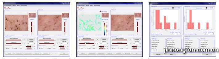 3. 毛孔分析軟件包:這款軟件包可以用來(lái)分析化妝品的使用及皮膚治療對(duì)毛孔數(shù)量及大小的影響。